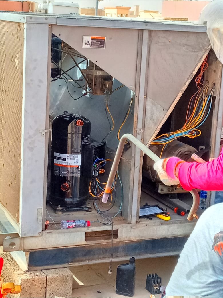 ضمن التزامنا بضمان الكفاءة التشغيلية العالية واستمرارية الأداء، تولت شركة FrostScape تنفيذ أعمال الصيانة الدورية لمجموعة من أنظمة التكييف الباكِدج المركزي في منشآت متعددة.